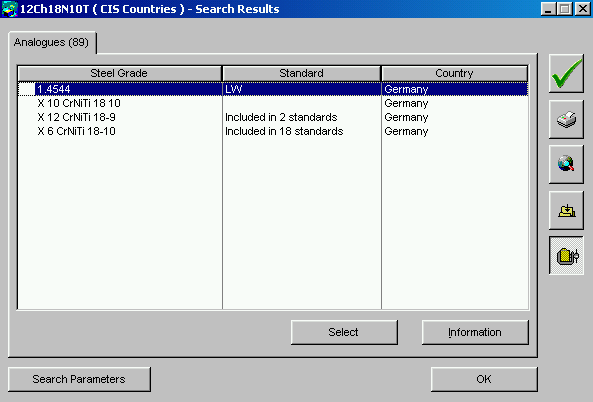 WinSteel provides two search options for foreign equivalences of steel grades: