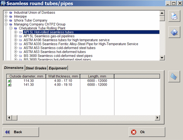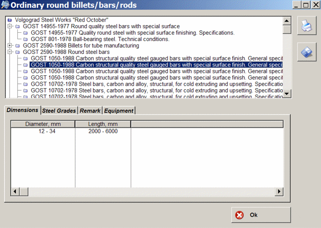 detailed information on products with references to standards on assortment and specifications, with indication of steel grades and main dimensions.