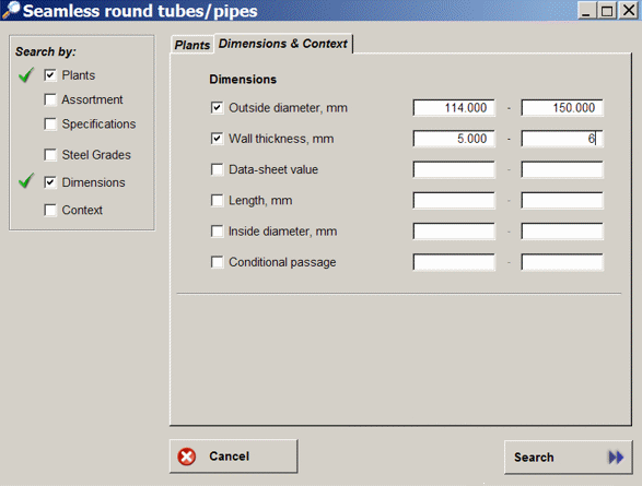 Additional information on standards, steel grades, dimensions can also be displayed by simply clicking on a product's name.